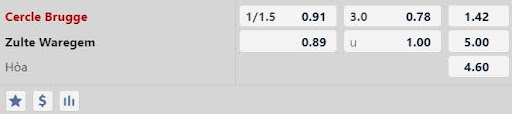 - Cercle Brugge chấp 1.25 trái với mức ăn tiền 0.91
